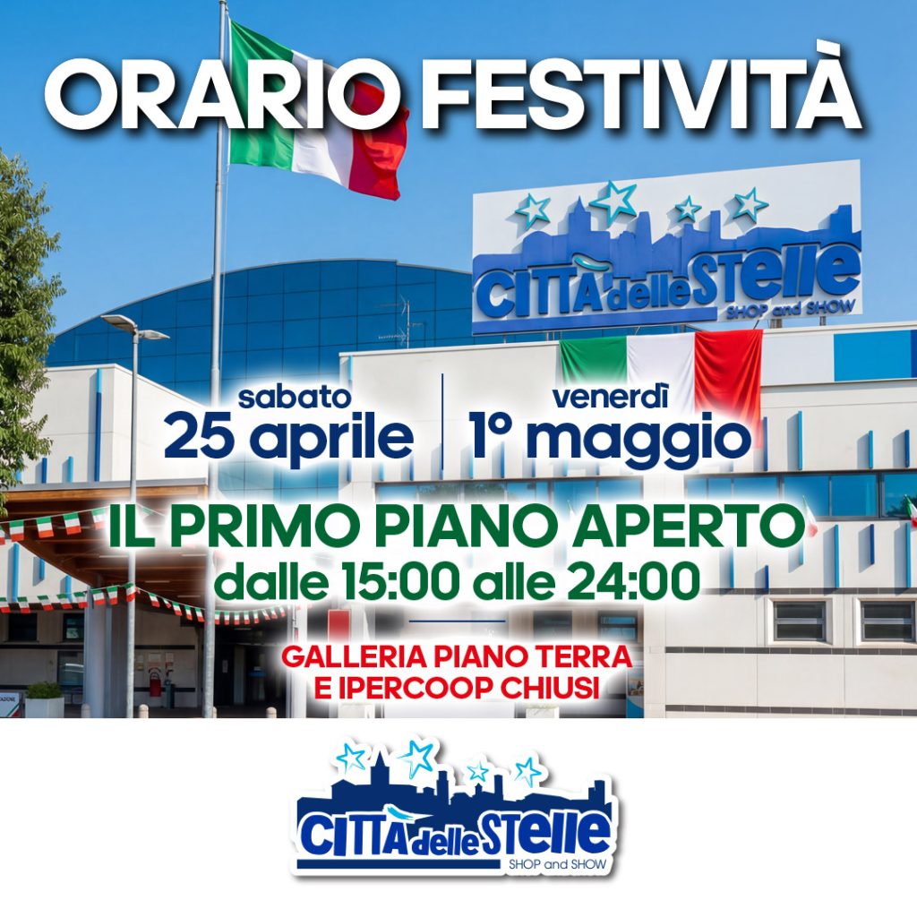 In occasione del 25 aprile e del 1° maggio, il centro ti aspetta con un orario speciale 🛍️