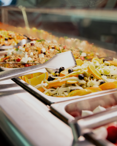 – Scegli dal buffet ricco di piatti freschi e gustosi, preparati ogni